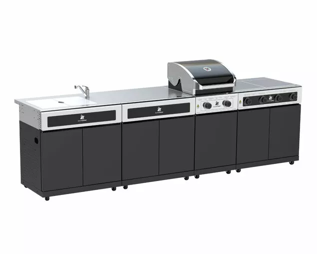 Design the ultimate outdoor kitchen and BBQ your way with Beefmasters range of add-on kitchen components; Classic Range, Bench & Sink.. The Beefmaster Outdoor Kitchen suits outdoor spaces of every shape and size, each model comes in 3 different sized cooking systems: 2 Burners, 4 Burners or 6 Burners. Designed to stand alone or matched with our outdoor kitchen modules, build the perfect BBQ Kitchen for your home with Beefmaster’s unique modular customisation. This Kitchen Island is one of more than 85 possible variations of building your own customised outdoor kitchen island. If you have further inquiries call our nearest store for detailed information.