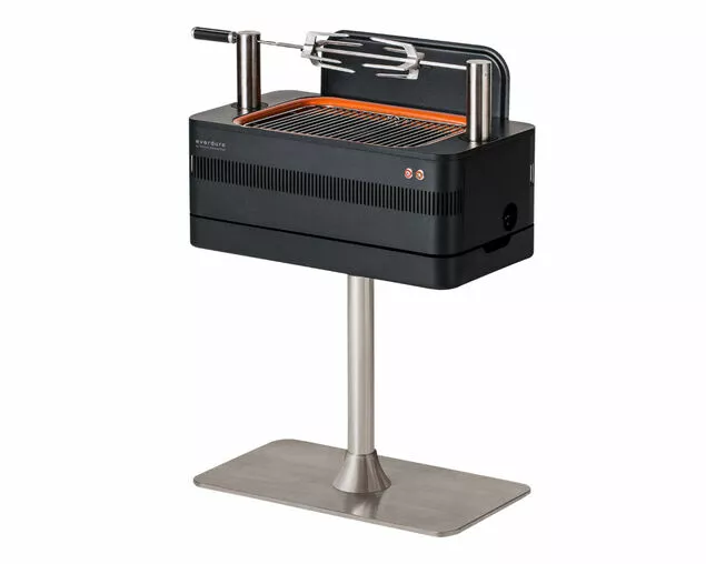 With the Fast Flame Ignition System™ (9 minutes), featuring an electric element, you can get your charcoal burning at just the right temperature in just 10 minutes. With the patented Rotiscope Technology™, you can set up an authentic, top-of-the-line rotisserie, powered by a discrete motor, in moments. The jaw-like Cliplock Forks™ ensure everything from chickens to suckling pigs are kept firmly in place on the rotisserie rod as it turns. From the subtly integrated rotisserie, to the retractable power cord, the FUSION™ is the perfect balance of function and form, taking design cues from minimalist Danish design. Easy to use and take care of. The porcelain enamel firebox and charcoal tray are easy to clean after use. Make your FUSION™ even more versatile with the free-standing pedestal and move your barbeque with ease.