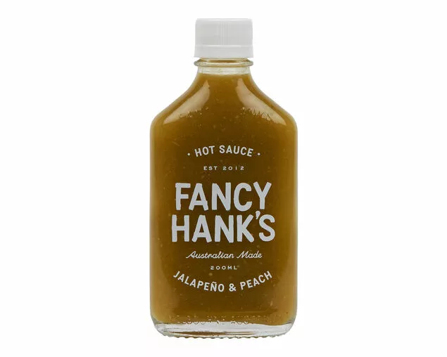- White vinegar, green jalapeno chilli (24%), peaches (13%) [peaches (60%), reconstituted pear juice (39%), food acid (330), antioxidant (300)], onion, water, garlic, sugar, salt, tomato, xanthan gum (415).