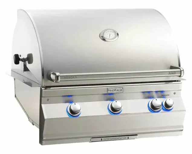 Analog Thermometer with polished stainless steel bezel is embedded in the hood. It is large and attractive with a forward angle for easy viewing.