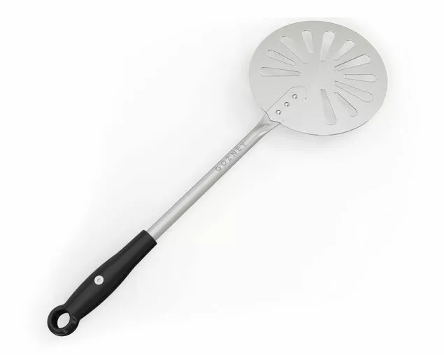 After using the Roccbox Pizza Peel to place fresh pizza inside Roccbox, utilise the Roccbox Turning Peel to slide and turn the pizza simply and easily whilst cooking. Incorporating a slimline, circular surface, the peel fits easily beneath a partially cooked dough base, enabling the gentle turning or manoeuvring of baked goods within the oven.