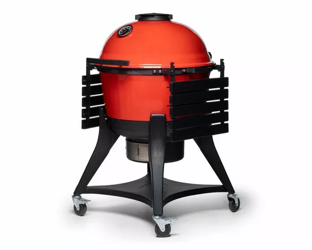 Kamado Joe continues its innovation with the Kettle Joe – a kettle barbeque with unique ceramic cooking features that improve heat retention, fuel efficiency, and smoking ability. The 2-Tier Divide & Conquer system allows you to cook foods at different temperatures. The barbeque also comes with the revolutionary SlōRoller Hyperbolic Smoke Chamber insert, which harnesses the power of cyclonic airflow technology to control heat and smoke at smoking temperatures.