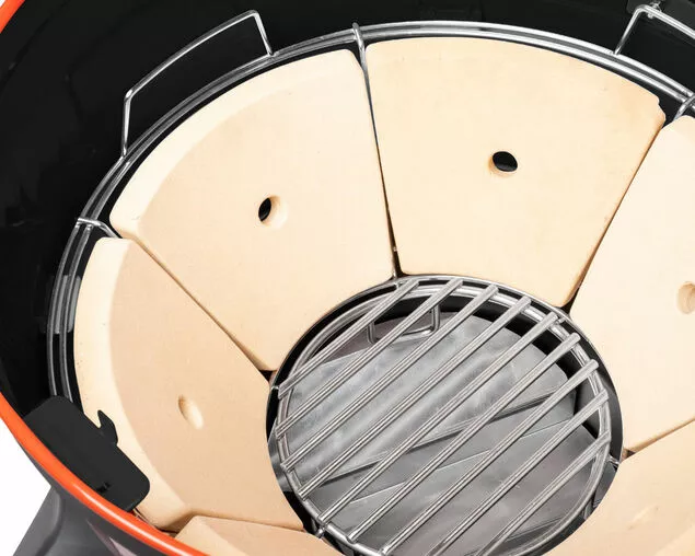 - Efficient ceramic firebox allows for longer cooking times using less charcoal.