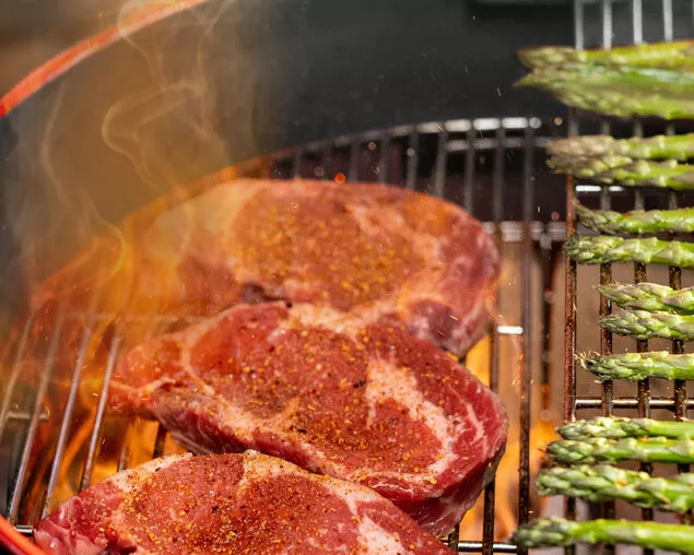 Wide cooking surface with a high dome, perfect for smoking large cuts of meat.