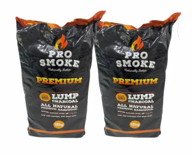 2 x Pro Smoke 18kg Premium Hardwood Lump Charcoal