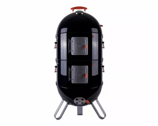 This highly versatile BBQ Smoker can grill, roast or smoke food to perfection, the perfect smoker for those starting out or looking for a reliable everyday barbecue-smoker. In-built lid gauge and multiple vents allowing you to control your temperature with ease. Perfect size for families and barbecue parties! Also works as a great portable grill for the beach. Large range of accessories available to make your smoker even more versatile. Made from highest quality materials, with a 0.8mm plate steel body coated in durable porcelain it will resist the elements for years to come. All fittings throughout – side handles, clips, and nuts and bolts – are rust resistant Stainless Steel including the grills.