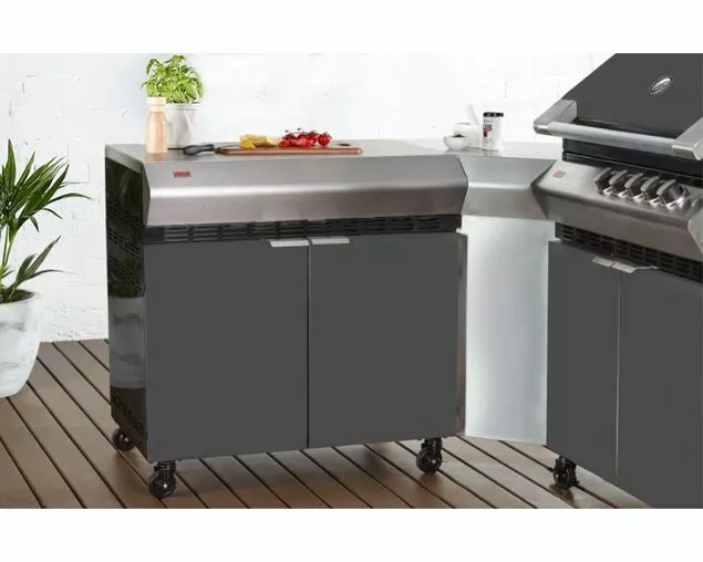 - The cart offers ample storage for cleaning products, BBQ tools and even a small waste bin