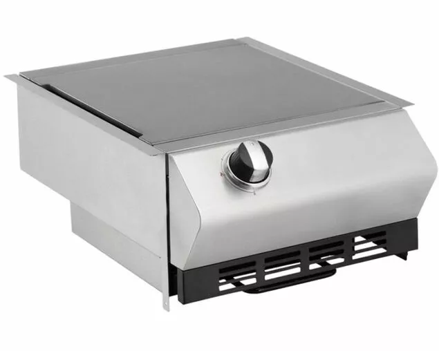 The powerful side burner is recessed to maintain a work surface when not in use and for better protection from wind whilst being used.